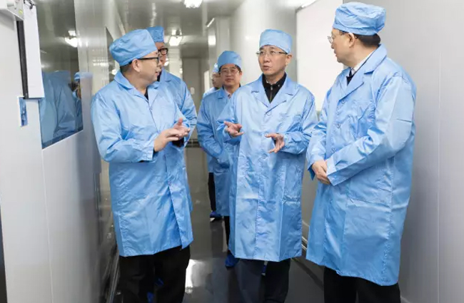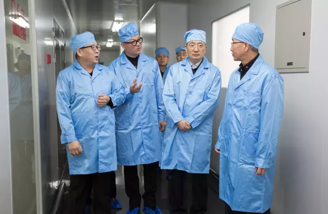汇报结束后,张天强专员、冯建龙行长等一行在沈建军董事长及美保龙生物疫苗工作人员陪同下,通过环形参观走廊,对生物疫苗车间进行现场考察,详细咨询了疫苗生产流程和一些细节。张天强专员参观完国内一流的悬浮培养车间、泡腾片车间等之后,认为高科技高技术含量的企业发展之路,符合当前国内经济转型升级的形势,也是未来企业生存和强大的必经之路,表示对大飞龙动保集团的发展前景十分看好,勉励集团脚踏实地,坚持以用户需求为本,加强研发力度,做到更好,更强。