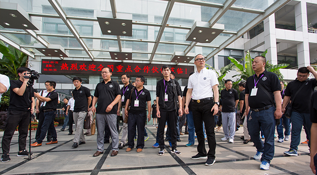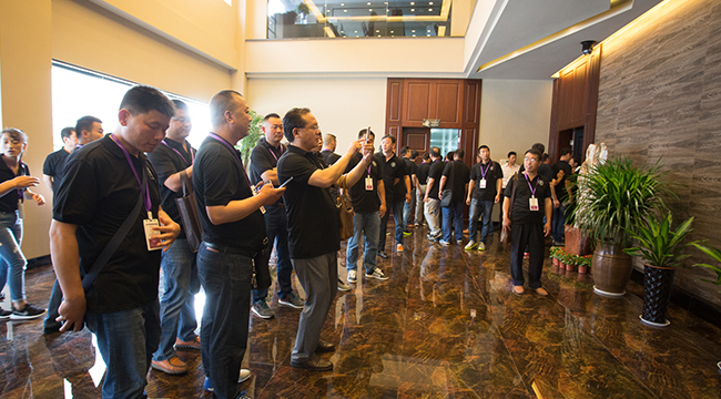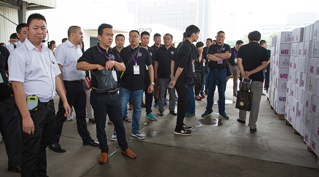 随着11辆大巴缓缓驶入,与会合作伙伴来到大飞龙总部。逾700名经销商合作伙伴与大飞龙动保股份管理团队进行了盛大的合影,场面热闹、震撼、壮观、有序。接着,与会合作伙伴面带笑容,在大区老总和技术老师的带领下,分11个大队,参观了全国领先的兽药制剂车间和标准化仓储中心, 创新的大飞龙动保股份开发出了一大批深受广大规模猪场赞誉的兽药,如高效治疗呼吸道疾病的“三仙汤”、“泰妙奇”,以及提高免疫力的“免异太”、“酸美酵素”等。
