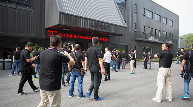 合作伙伴参观的第一站是美保龙生物新技术研究所,研究所格调出众,气派非凡,深色的建筑风格凸显了科学研究的严谨和深奥。
