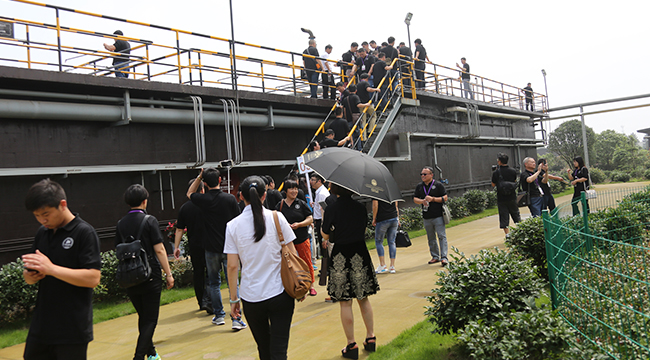 与会嘉宾一同参观了生产区实时监控系统,种猪展示厅,当看到健康活泼、体态优美、体形高大、四肢粗壮的新美系大体型种猪时,纷纷表示果然是“秀美生态环境养出好种猪”!!随后移步美保龙生态循环区中央调配系统及污水处理中心,参观和了解了国内最先进的生态循环系统及污水处理技术。